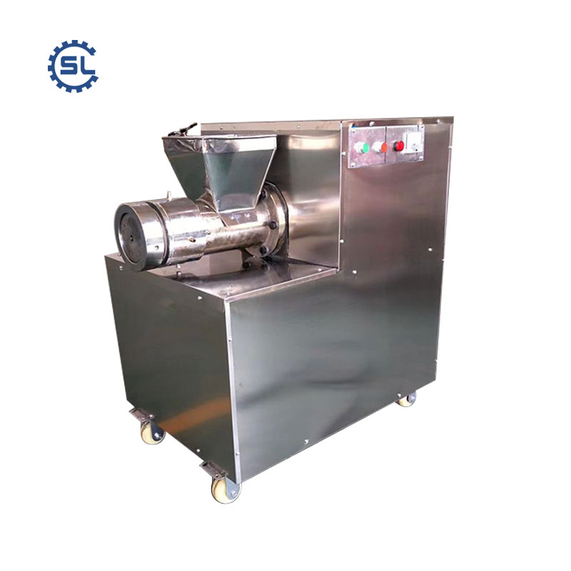 This machine is mainly composed of a gearbox, flour materials shaft propeller and a forming mold. The flour materials can be rolled and squeezed repeatedly in the propeller. The propeller can be squeezed and cut into regular patterns of small foods through the mold. It is small in size, high in efficiency, simple in operation, flexible in use, and has multiple functions in one machine.